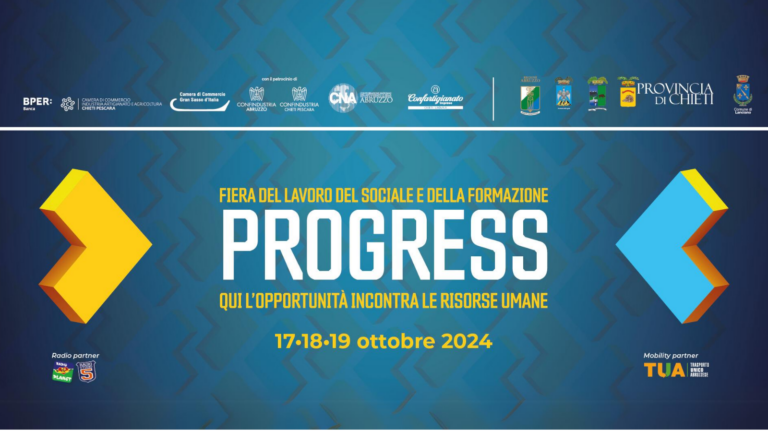 I giorni 17, 18, 19 Ottobre parteciperemo a “Progress”, Fiera del Lavoro, del Sociale e della Formazione, a Lanciano presso Lanciano Fiera. La manifestazione vuole