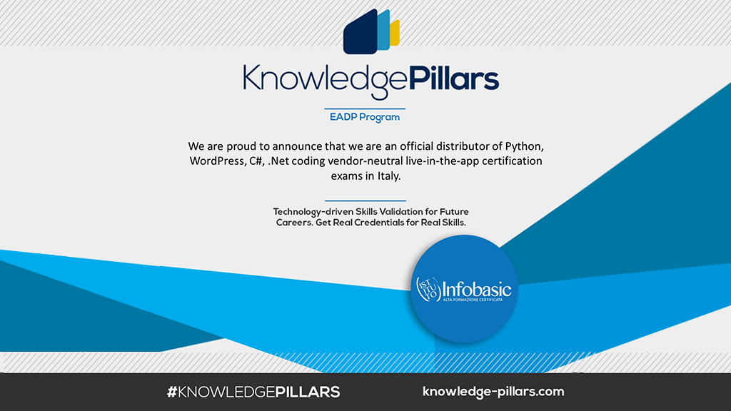 Siamo orgogliosi quindi di annunciarvi che da oggi entriamo a far parte dei distributori ufficiali in Italia per le Certificazioni Python, WordPress, C# e .Net.